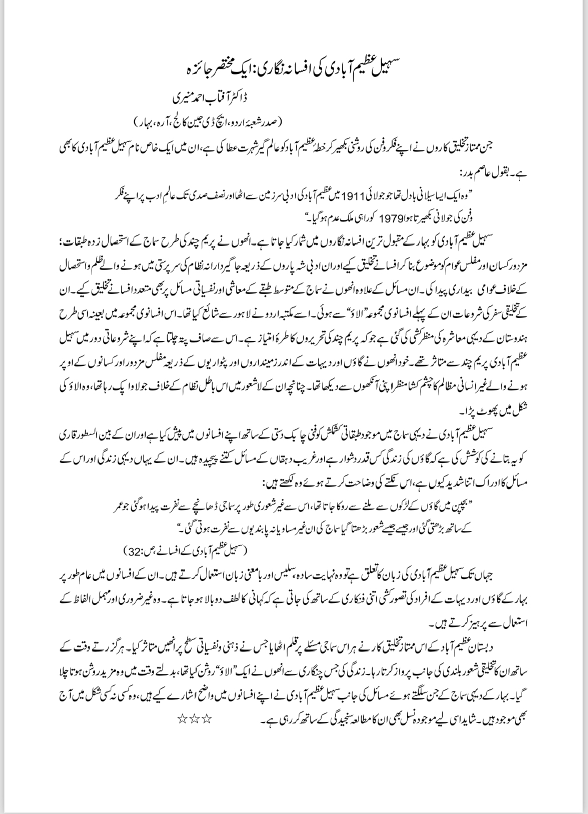 | 12 | Sohail Azimabadi Ki Afsana Nigari | Dr. Aftab Ahmad | UG | B.A | Semester VI | 06-02-2026 | View |